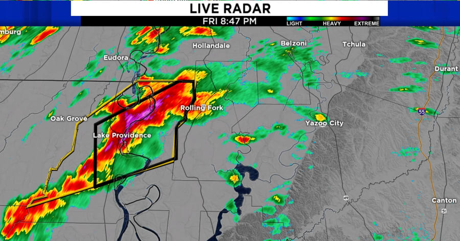 Radar detected debris after the violent tornado moved through Rolling Fork. A tornado emergency was in effect prior to the storm moving through. A tornado emergency is a level up from a tornado warning.