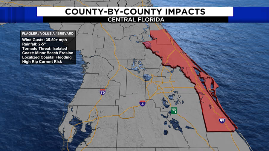 ORLANDO, Fla. – A Gulf low will impact the area with heavy rain, damaging winds and possible severe storms.